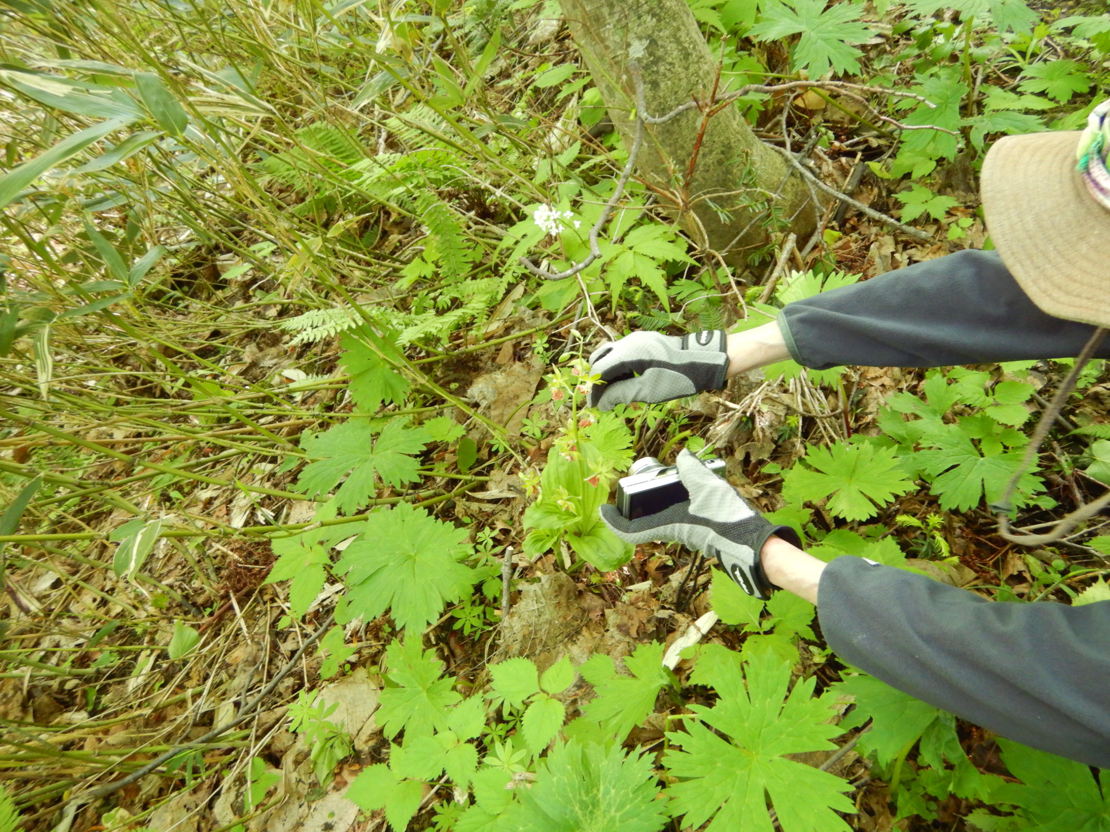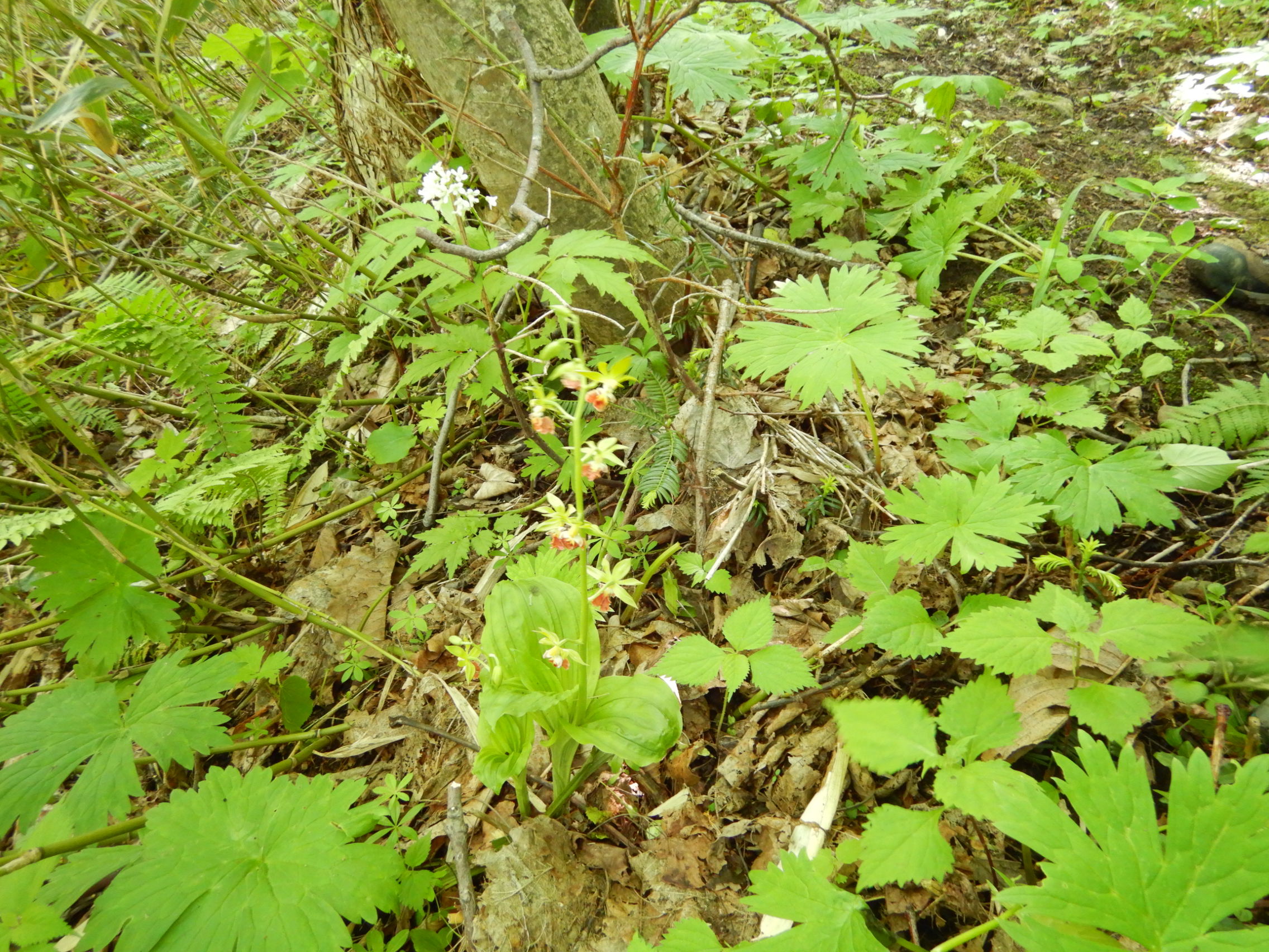 山道に戻ったら サルメンエビネの群落≪6株≫見つかりました。