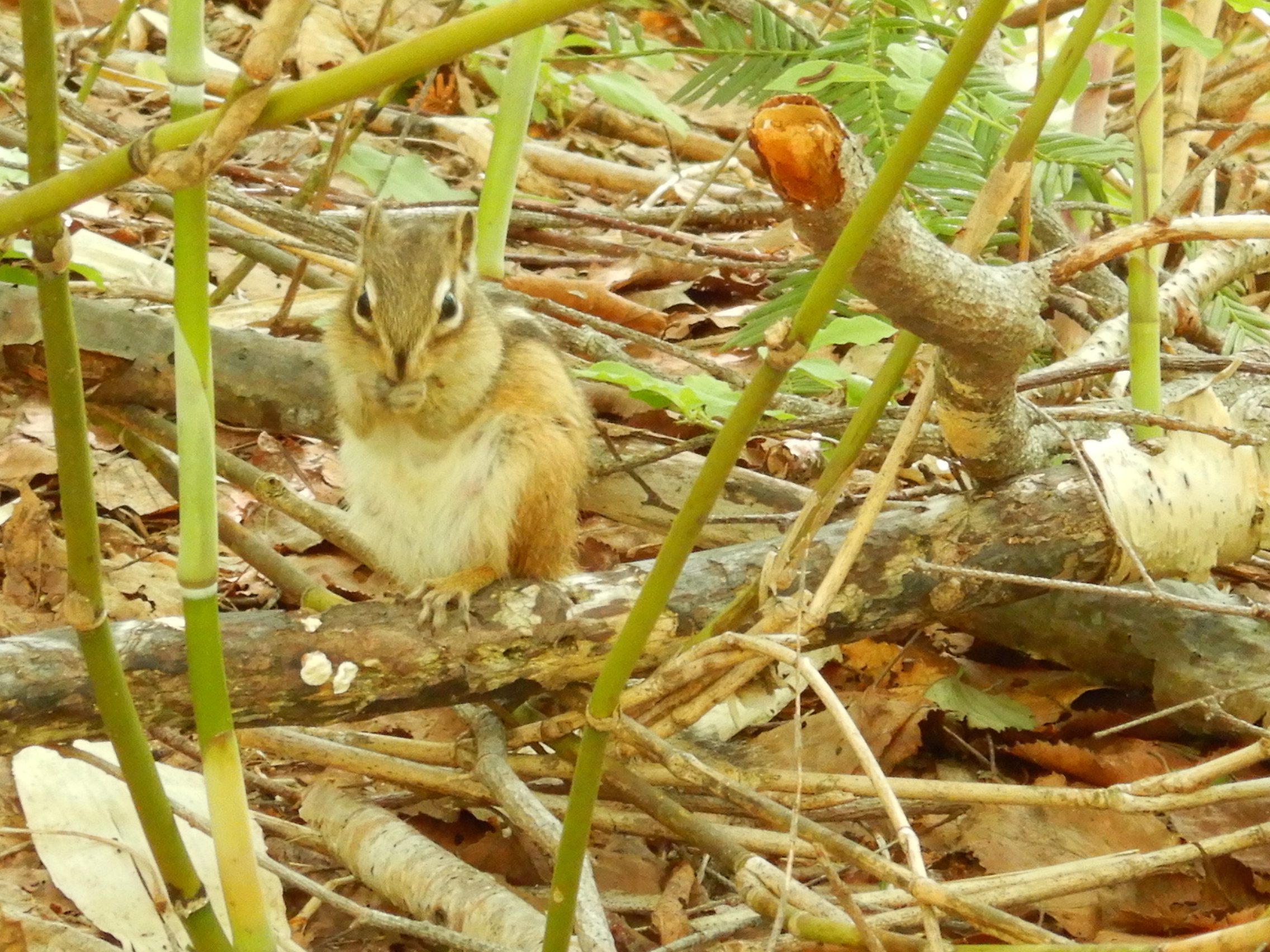 人慣れしたシマリス 逃げるどころかおねだりモード。